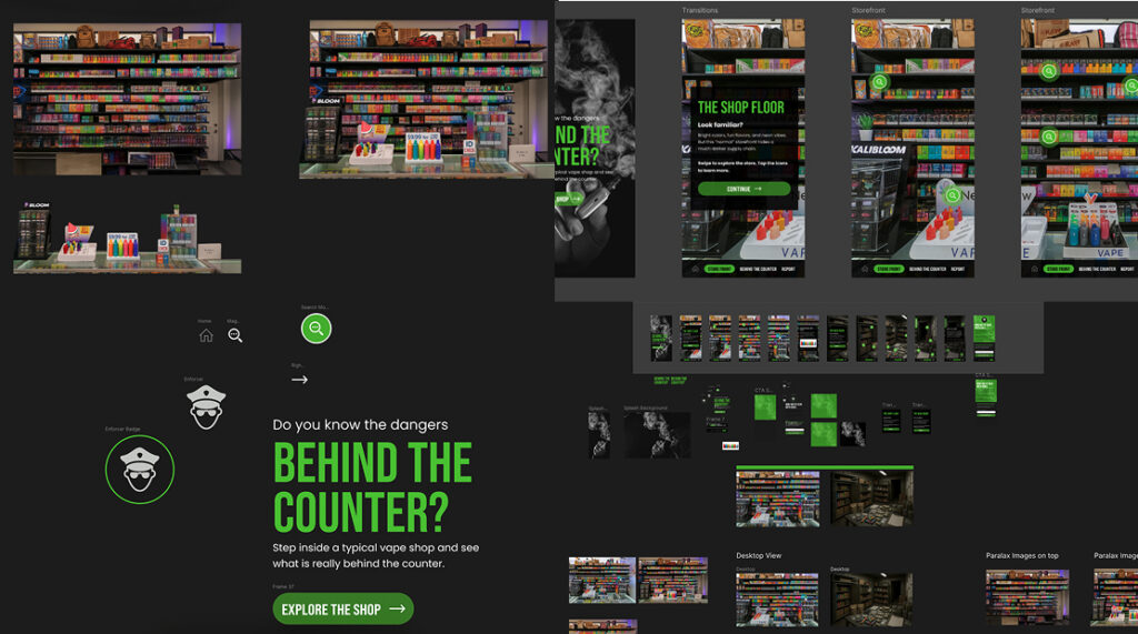 Our client came to us with a clear goal: build a mobile experience for law enforcement convention attendees that reveals the hidden risks in vape and smoke shops. It needed to work on people’s phones through a QR scan and run smoothly on event kiosks, too.