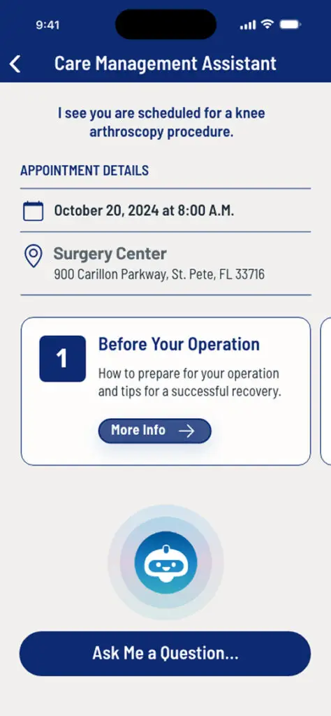We identified an opportunity to address this gap by designing a proactive patient support system that works across the entire care journey. The goal was not to introduce another app or portal, but to reduce reliance on them altogether. The product needed to adapt to provider-specific care plans, integrate with existing systems, and deliver timely, relevant guidance without adding operational overhead.