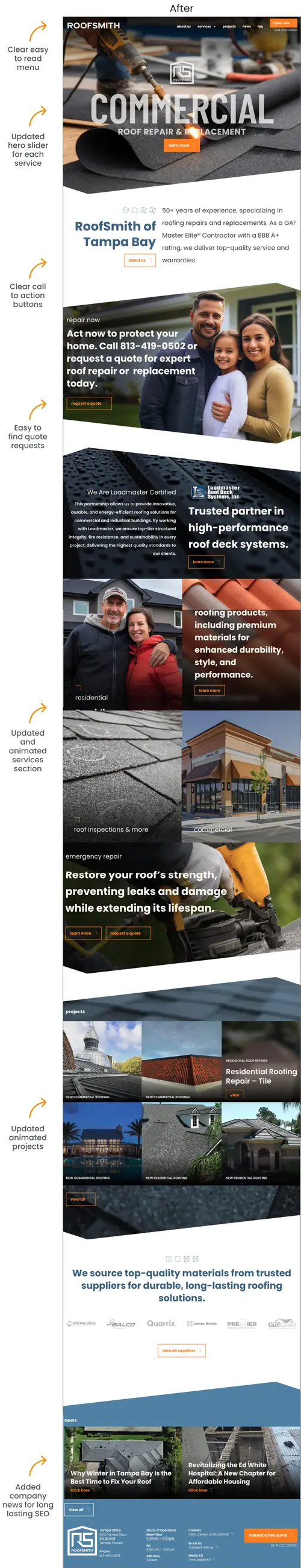 Together, the logo and website elevate RoofSmith’s presence in a competitive market and better align their digital experience with the quality of their services.