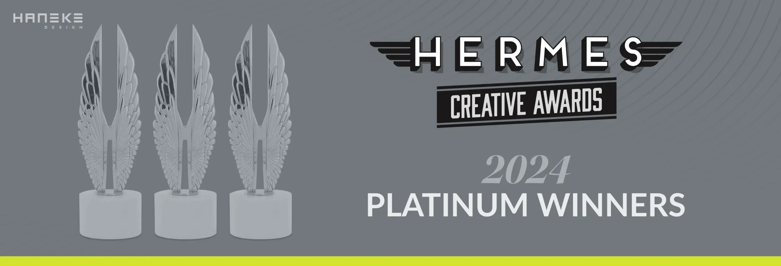The Association of Marketing and Communication Professionals (AMCP) recognizes Haneke Design’s creative achievement and commitment to delivering exceptional solutions that captivate and delight end users with three Platinum Hermes Creative Awards.